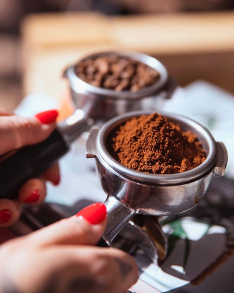 Hạt cà phê sau khi rang được xay thành bột với độ mịn phù hợp cho từng phương pháp pha chế.